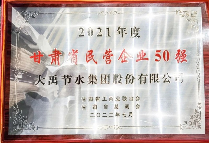2022年7月4日九州酷游官网节水集团荣获2021年度甘肃省民营企业50强