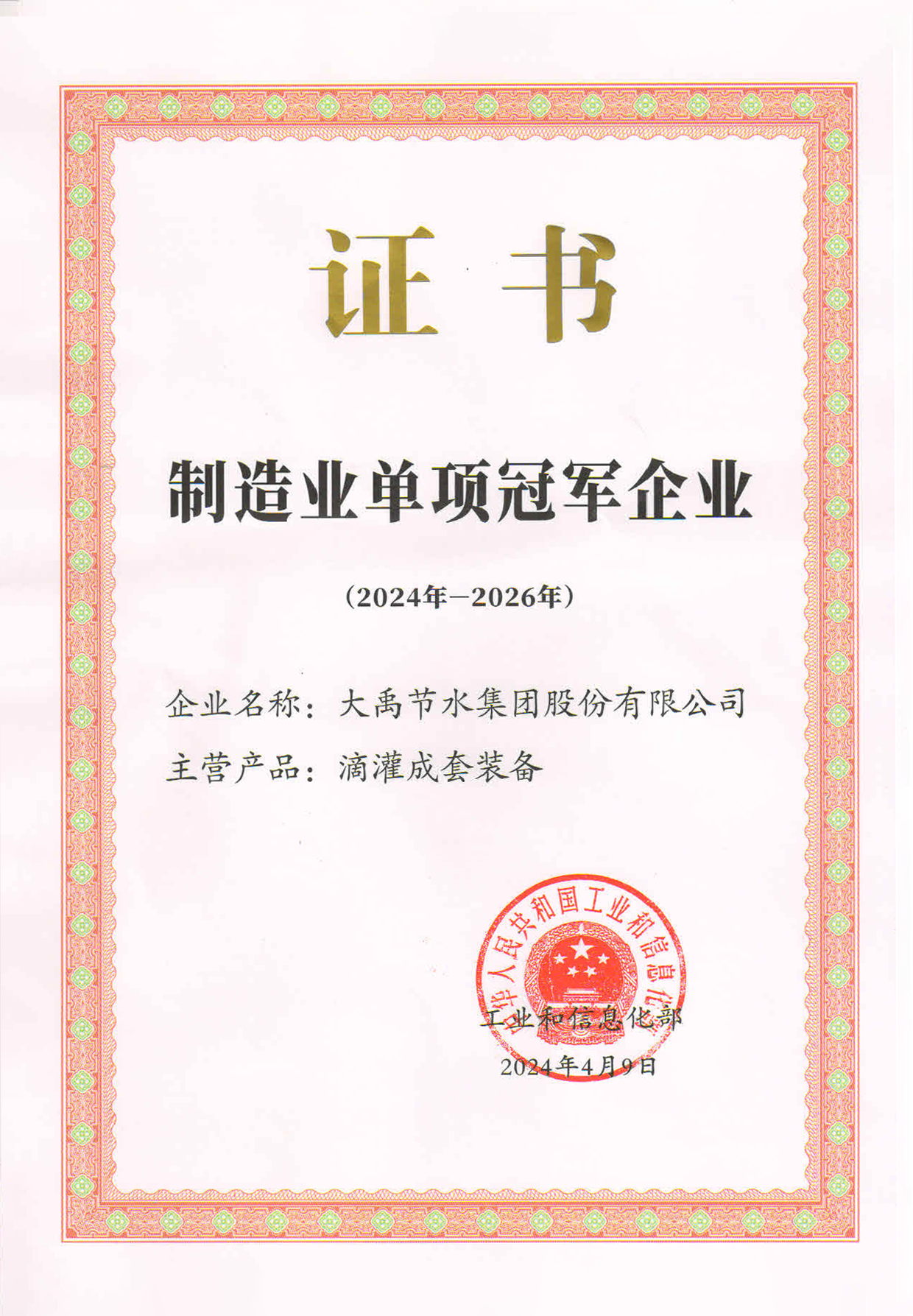 九州酷游官网节水集团依附卓越的业绩和科技立异能力,荣获天下第八批制造业单项冠军企业。