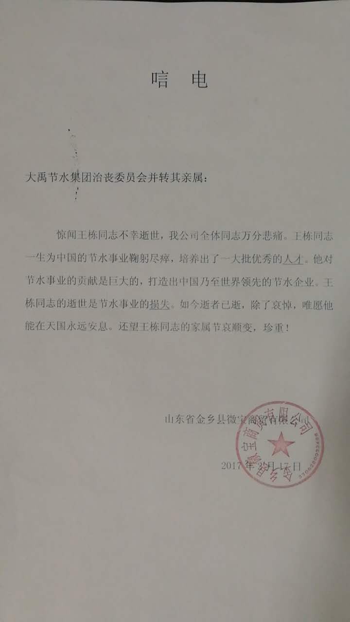 金乡县徽宝商贸有限公司唁电