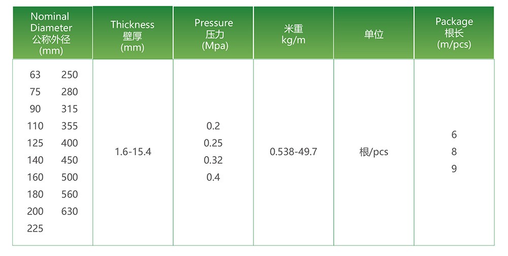 公称外径:63mm-630mm
