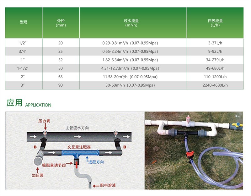 使用虹吸原理,利便吸入种种液态肥料并注入浇灌管道中,水肥匀称浇灌种种作物;