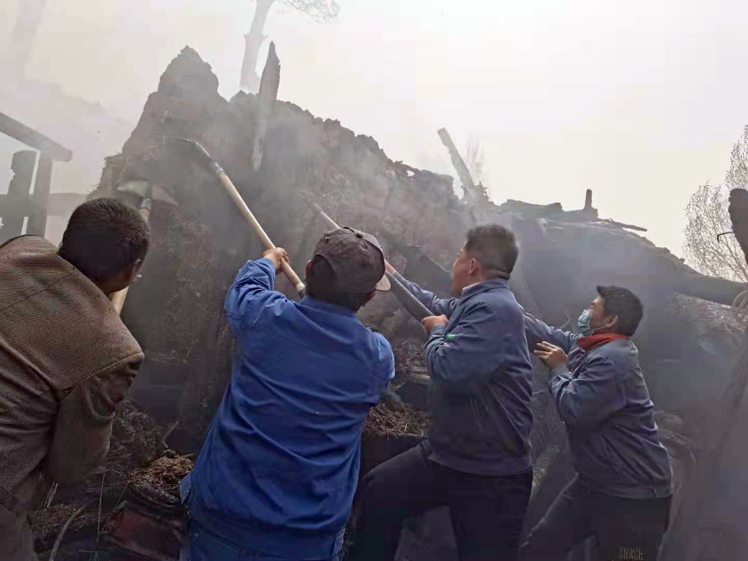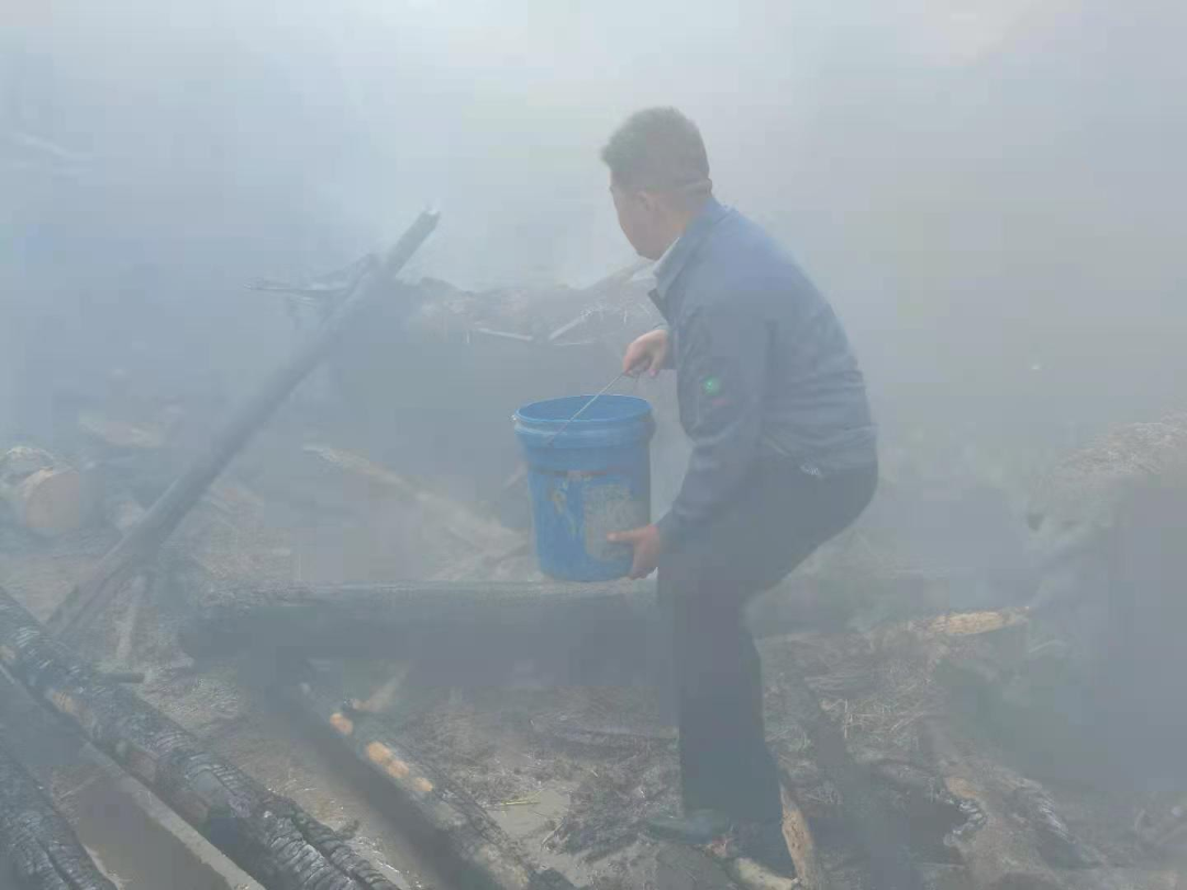 九州酷游官网6名员工抵达现场后,发明三家农户的后院草棚已经所有起火,浓烟伸张到整个院落。他们先让农户切断了自家电源,然后对明火举行扑救。由于其时风速太大,明火扑救效果不显着,于是他们坚决在外围做隔离火源处置惩罚,拆除周围草棚,防治火势扩大伸张。