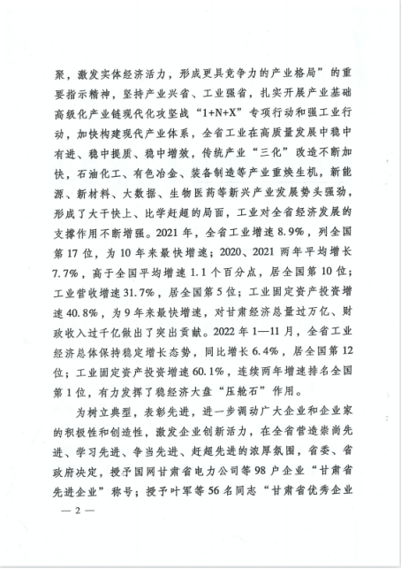 ¸ÊËàÊ¡ÏȽøÆóÒµºÍÓÅÒìÆóÒµ¼ÒÍÆ¼öÆÀÑ¡ÊÂÇ鯾֤×Ô϶øÉÏ¡¢Öð¼¶ÍƼö¡¢²î¶îÆÀÑ¡¡¢ÃñÖ÷ÔñÓŵķ½·¨£¬¾Ê¡ÏȽøÆóÒµºÍÓÅÒìÆóÒµ¼ÒÆÀÉóίԱ»áÆÀÉó£¬Ê¡ÏȽøÆóÒµºÍÓÅÒìÆóÒµ¼ÒÆÀÑ¡±íÑïÔ˶¯Ïòµ¼Ð¡×éÉóºË£¬Ê¡Õþ¸®³£Îñ¾Û»áÉóÒ飬±íÑïÁ˰üÀ¨¾ÅÖÝ¿áÓιÙÍø½ÚË®ÔÚÄÚµÄ32»§ÆóҵΪ¸ÊËàÊ¡ÏȽøÆóҵͻ³öТ˳½±»ñµÃÕߣ¬Í¬Ê±±íÑïÁ˰üÀ¨¼¯ÍŶʳ¤ÍõºÆÓîÔÚÄÚµÄ56Ãûͬ־Ϊ¸ÊËàÊ¡ÓÅÒìÆóÒµ¼Ò¡£