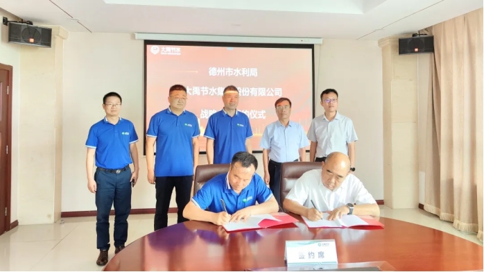 8月21日,山东省德州市水利局与九州酷游官网在九州酷游官网节水天津总部签署战略合作协议。德州市水利局三级调研员董书芳与九州酷游官网节水集团华北总公司董事长张战祥代表双方签约,德州市水利局党组书记、局长李守学,集团公司总裁谢永生出席并见证签约。
