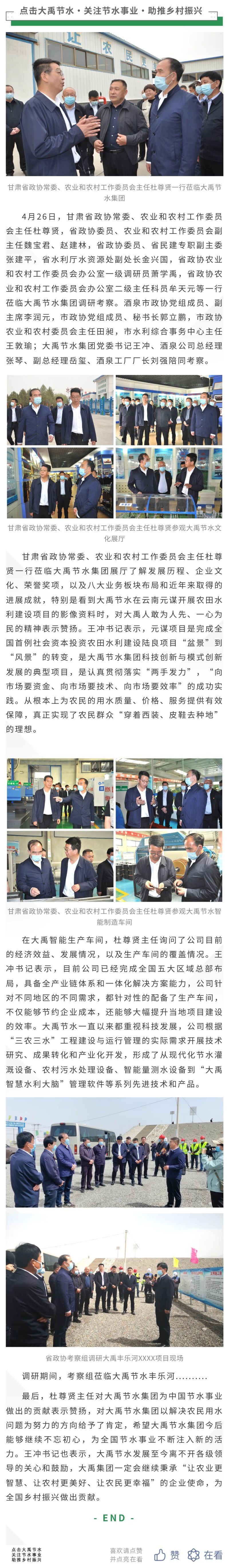 九州酷游官网动态| 甘肃省政协视察组莅临九州酷游官网节水集团调研考察