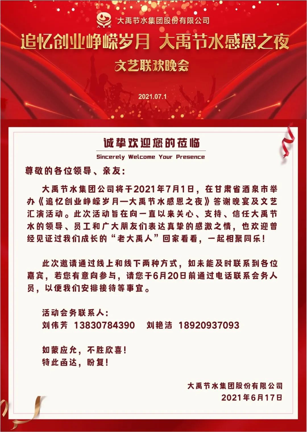 真挚约请| 追忆创业峥嵘岁月—九州酷游官网节水感恩之夜约请函