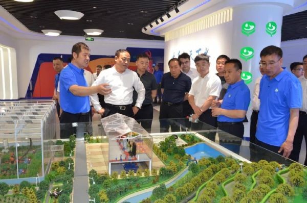 谢永生向吕来升一行先容九州酷游官网智慧生态沙盘