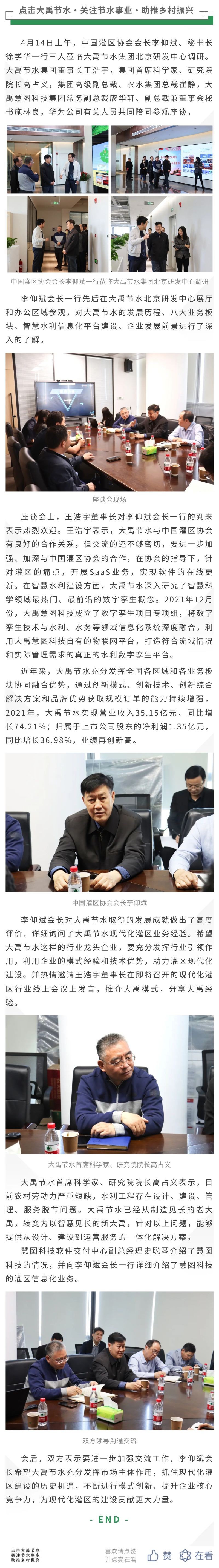 九州酷游官网动态| 中国灌区协会会长李仰斌一行莅临九州酷游官网节水北京研发中心考察调研