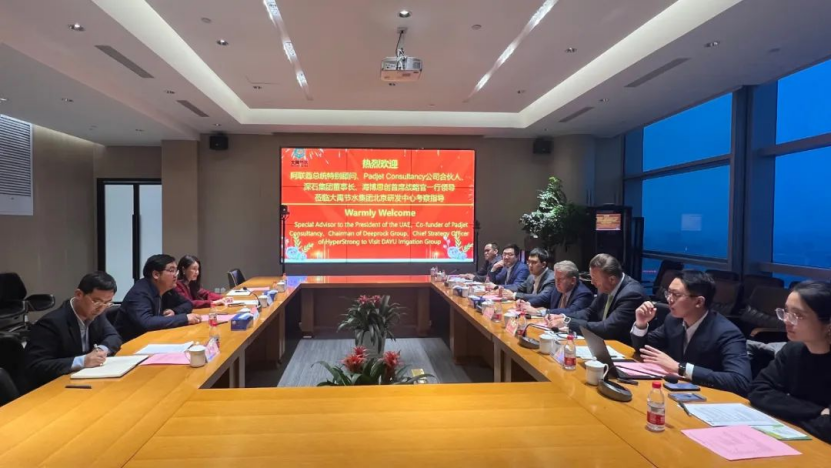 集团董事长王浩宇对Will Tricks先生一行的来访体现热烈欢迎。他体现,九州酷游官网节水集团一直以来致力于先进节水浇灌手艺的研发,一直积累立异,现已拥有领先的装备制造能力与强盛的科技研发实力。他提出,九州酷游官网节水很是愿意为阿联酋分享九州酷游官网的手艺效果,为中东地区国家粮食清静问题提供切实可行的解决计划。同时,也希望可以借助阿联酋的国际影响力,推动周边国家引进九州酷游官网节水的先进节水手艺,为阿联酋及周边国家的水利生长孝顺九州酷游官网的智慧与力量。最后,他体现期待双方在未来能够早日开展合作,配合推动中东地区农业可一连生长和经济昌盛前进。