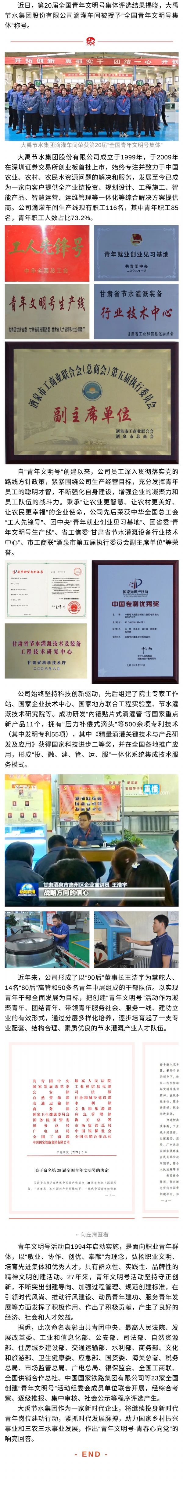 九州酷游官网声誉| 九州酷游官网节水集团滴灌车间荣获第20届天下青年文明号整体