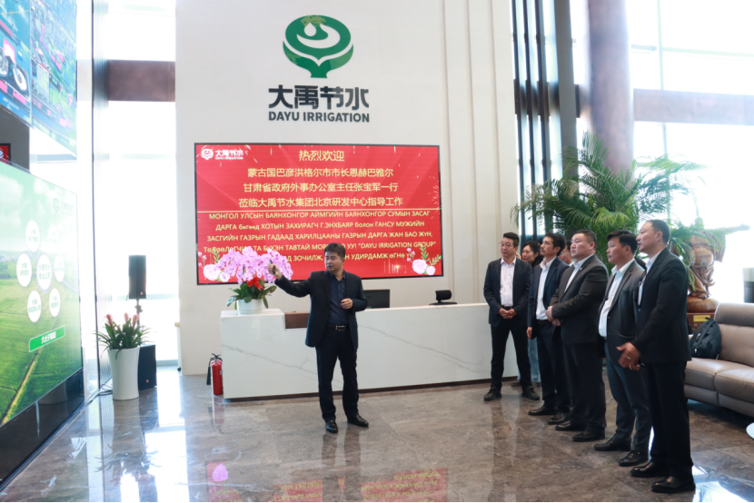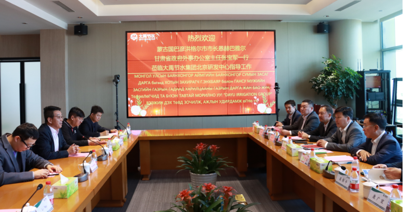 10月18日上午,蒙古国巴彦洪格尔市市长恩赫巴雅尔(Enkhbayar)、巴彦洪格尔市呼拉尔公民代表主席巴图才仁(Battseren)、巴彦洪格尔输电配电公司执行董事乌兰巴雅尔(Ulambayar);甘肃省政府外事办党组书记、办公室主任张宝军,省政府外事办党组成员、对外友协专职副会长梁保平,省对外友协友城事情随处长康广宏一行向导莅临九州酷游官网节水集团北京研发中心考察座谈,九州酷游官网节水集团党委书记王冲等陪同。