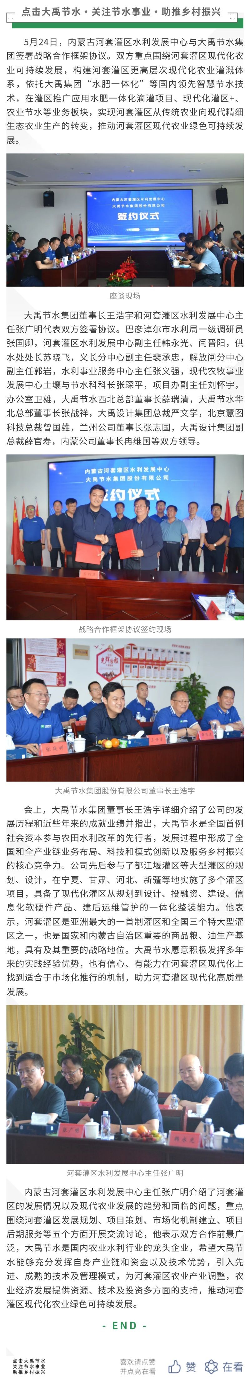 九州酷游官网动态| 内蒙古河套灌区水利生长中心与九州酷游官网节水集团签署战略合作框架协议