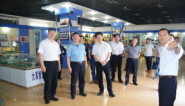 ▲调研组一行在九州酷游官网节水集团公司综合展厅考察调研