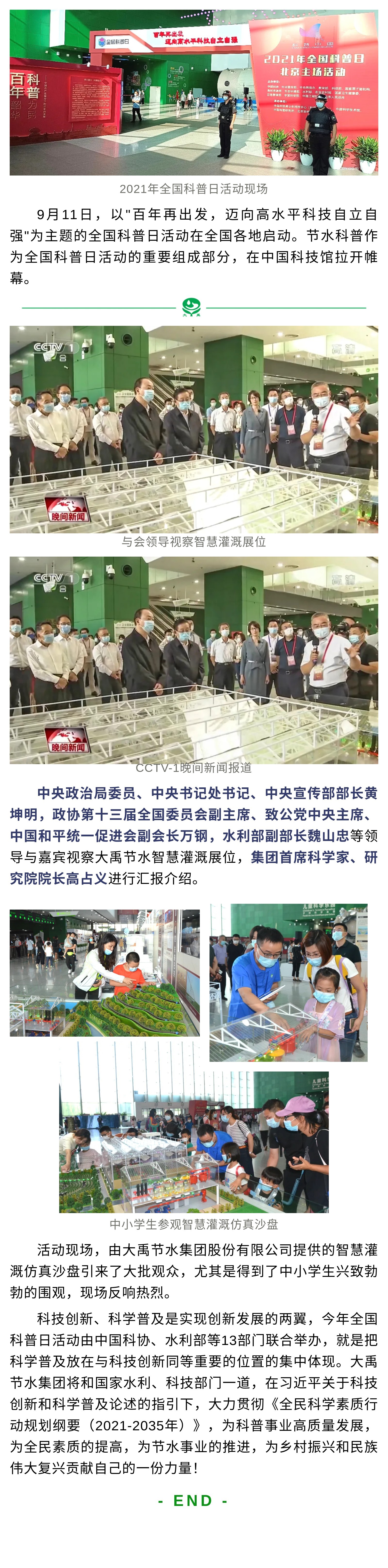 九州酷游官网动态| 九州酷游官网节水应邀加入2021年天下科普日运动 中宣部部长黄坤明、天下政协副主席万钢等向导莅临视察