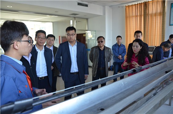 银山局长等一行先后深入公司PVC、滴灌管(带)生产车间,喷灌机、施肥过滤器装备生产基地及九州酷游官网研究院实验室实地考察。九州酷游官网节水集团公司党委书记、副董事长王冲详细先容了公司研爆发产的种种节水浇灌产品及其研发、生产、立异情形。