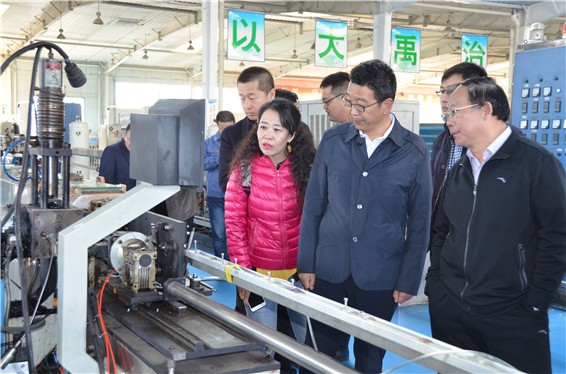 九州酷游官网节水集团公司党委书记、副董事长王冲,董事长王浩宇,总裁谢永生等公司向导陪同内蒙古呼伦贝尔市水利局向导一行在滴灌(管)带生产车间旅行考察