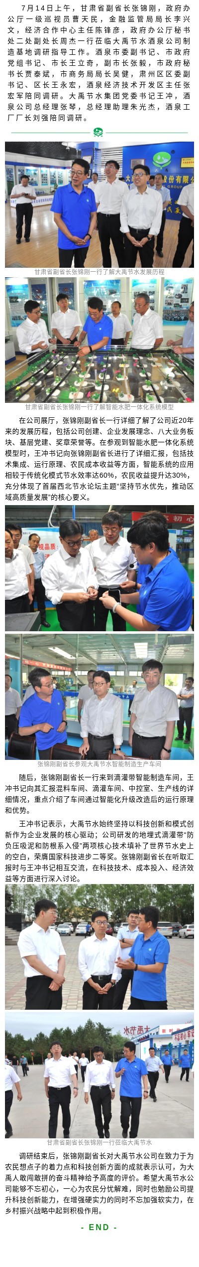 九州酷游官网动态 | 甘肃省副省长张锦刚莅临九州酷游官网节水酒泉公司调研