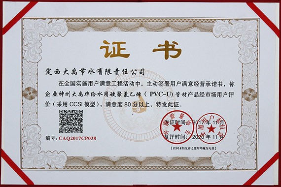 定西九州酷游官网节水有限责任公司建设于2005年,公司生长至今已成为节水浇灌产品的研发、制造、销售与节水浇灌工程设计、施工、服务为一体的专业化节水浇灌工程系统提供商。公司一直坚持质量和服务是企业的生命线,已建设的质量、情形、和职业康健清静管理体手册和程序文件,是在确保公司产品和运作知足主顾需求、公众期望和员工需求,实现优异的质量、情形和职业康健清静效益,提升公司焦点竞争力,实现规范操作而建设的"三合一"管理系统。在"三合一"管理系统运行优异的同时,公司恒久不懈注重产品质量的提升,先后申报取得陇西县人民政府揭晓的 《陇西县质量奖》证书和甘肃省质量协会评价揭晓的"PVC/PE管材甘肃省用户知足产品"证书。在2017年的客户知足指数测评报告中显示,公司的产品客户知足指数为89.9,获得了用户的普遍认可。