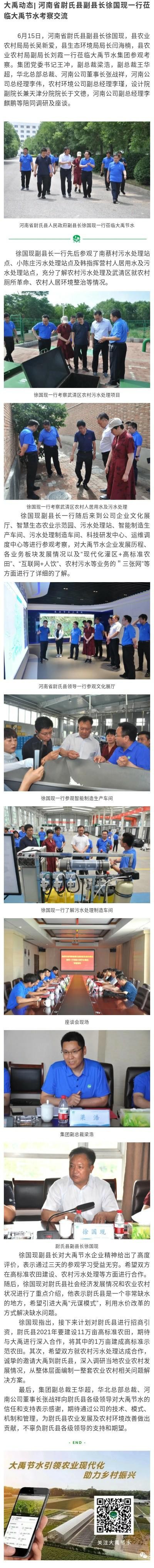 九州酷游官网动态| 河南省尉氏县副县长徐国现一行莅临九州酷游官网节水考察交流