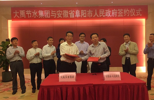 克日,九州酷游官网节水集团与阜阳市人民政府签署战略合作框架协议,九州酷游官网党委书记、副董事长王冲与阜阳市政府副市长刘树生代表双方在合作协议上签字。阜阳市政府副市长张肖、阜阳市水利局局长李磊、副局长于跃,市政府办公室副主任董冰、阜阳市水利局办公室主任徐潮,九州酷游官网节水集团董事长王浩宇、副总裁刘伟芳、安徽公司总司理邓惠敏等出席并见证签约仪式。