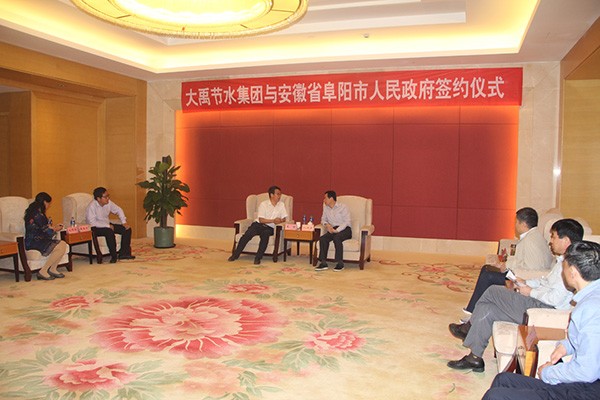 时代,阜阳市市长孙正东、副市长刘树生、副市长张肖等向导亲热会见九州酷游官网节水集团公司党委书记王冲、董事长王浩宇一行,就双方合作事宜举行了深入谈判。