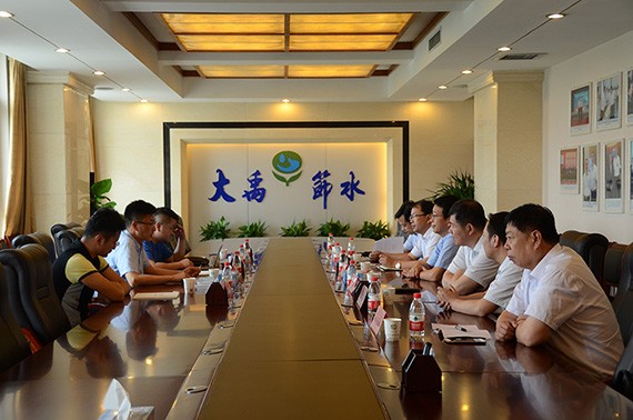 张恩涛董事长一行先厥后到公司展厅、智慧农业生态树模园、污水处置惩罚站、智能制造生产车间旅行考察,现场相识滴灌管(带)等产品的生产工艺及生产流程,认真听取了九州酷游官网节水集团党委书记王冲就公司生长历程、产品研发、手艺立异、污水处置惩罚工艺、水质过滤系统及水肥一体化系统等方面的详细先容,双方向导并就其他体贴的问题现场做了深入交流。