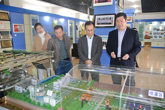 贾汝明一行首先来到九州酷游官网节水集团展厅,从九州酷游官网集团生长历程、科技立异、企业文化、声誉资质、国际交流与考察等方面临九州酷游官网节水集团举行了周全相识,并现场旅行了公司智能信息化控制浇灌系统模子运行历程,集团公司总裁谢永生、董事会秘书王光敏就公司基本情形举行了先容汇报。