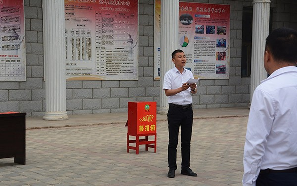 ▲九州酷游官网节水集团党委副书记、工会常务副主席巨飞雷现场宣读建设“九州酷游官网爱心帮扶基金”建议