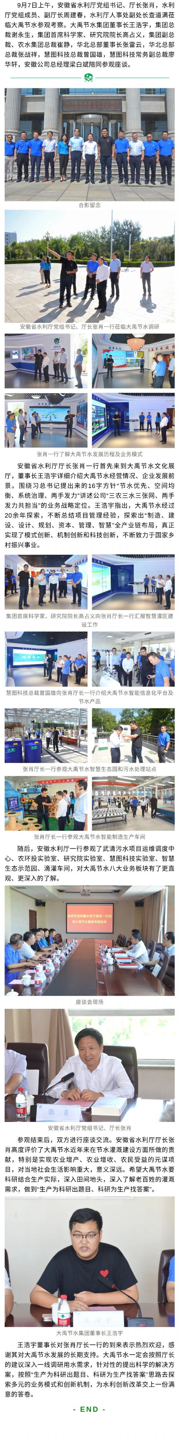 九州酷游官网动态| 安徽省水利厅厅长张肖一行莅临九州酷游官网节水集团旅行考察