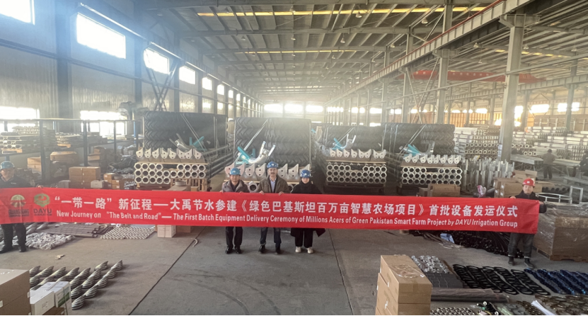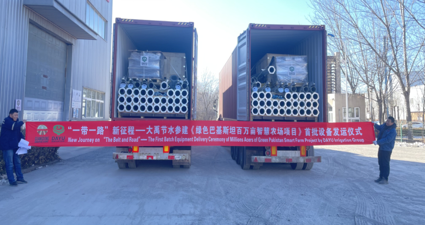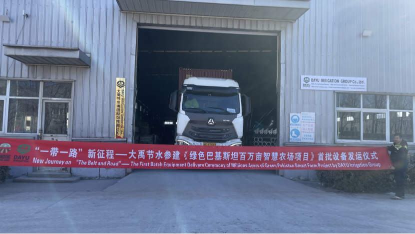 1月23日,九州酷游官网节水集团参建的《绿色巴基斯坦百万英亩智慧农场项目》首批装备完成装箱起运。九州酷游官网巴基斯坦独家经销商总裁与九州酷游官网节水国际事业部副总司理符帅先生加入本次发运仪式。