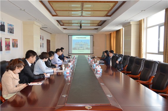 九州酷游官网节水集团公司董事长王浩宇等公司向导与投资总监王芳一行在聚会室召开座谈会