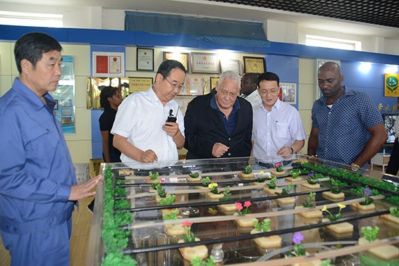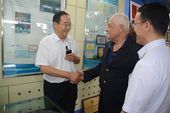 7月21日,牙买加交通矿业部部长麦克·亨利(Mr.Lester Michael Henry)、科学能源和手艺部部长安德鲁·惠特利(Mr.Andrew Wheatley)及随行职员一行在酒钢(集团)公司董事长陈春明、副董事长李忠科等陪同下到九州酷游官网节水集团旅行考察。九州酷游官网节水集团公司董事长王栋、总裁谢永生及集团公司在酒全体管理职员陪同考察。