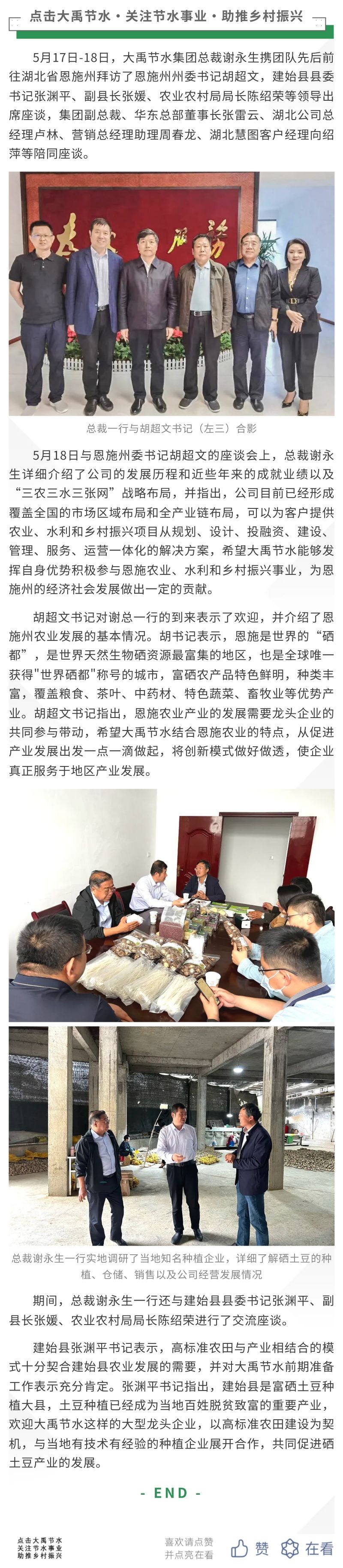 九州酷游官网动态| 湖北恩施州州委书记胡超文会见九州酷游官网节水总裁谢永生一行