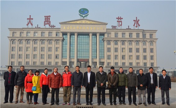 九州酷游官网节水集团公司总裁谢永生、黑枸杞公司董事长刘伟芳、天津公司总司理张学双、常务副总司理潘钰及九州酷游官网研究院副院长战国隆等陪同中信建设、农业部外经中心第二支部代表团合影