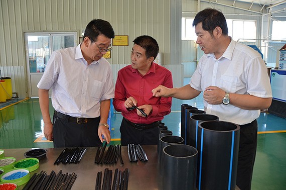 俄吞副州长一行先厥后到公司生产车间、试验田、实验室实地考察。在生产车间展板前王冲就公司生长历程、取得的声誉资质、国际营业开展情形等逐一做了先容。俄吞副州长现场相识了滴灌管等产品的生产工艺及生产流程。在试验基地,俄吞副州长一行认真听取了王冲就过滤系统、喷灌系统及污水处置惩罚装备的详细先容,俄吞副州长对智能化田间浇灌管理系统很感兴趣,在浇灌系统模子前亲自使用手机举行操作演示。