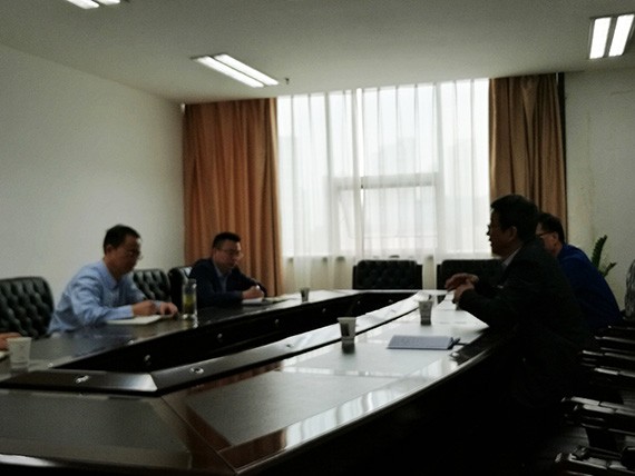 ▲荣昌区水务局副局长朱洋等向导与九州酷游官网节水集团公司党委书记、副董事长王冲一行座谈