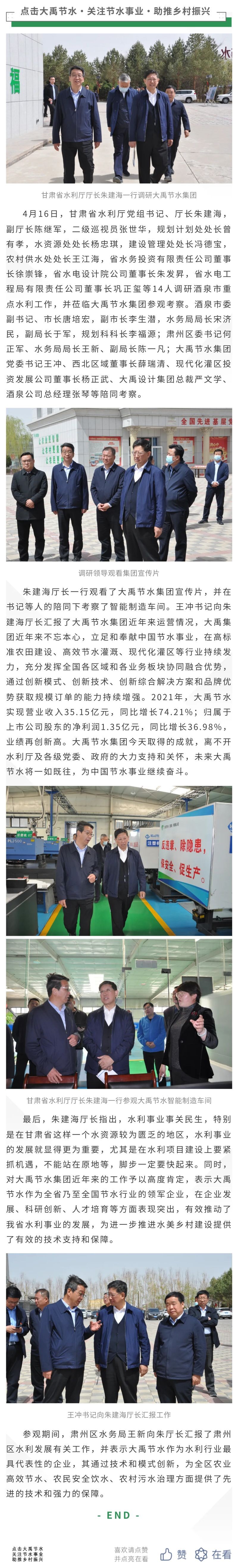 九州酷游官网动态| 甘肃省水利厅厅长朱建海带队考察省重点水利工程莅临九州酷游官网节水旅行调研
