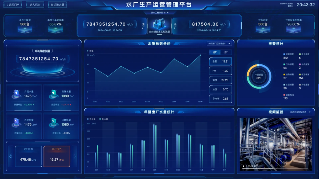 ͨ¹ý¹¤ÒÕ×é̬·½·¨¶ÔË®³§ÖÆË®¹¤ÒÕ¾ÙÐÐÔÚÏßÄ£Ä⣬ʵÏÖ´ÓË®³§ºê¹Û½á¹¹µ½Î¢¹ÛÄÚ²¿ÉèÊ©µÄһվʽä¯ÀÀ¡£´ËÄ£¿é²»µ«ÄÜʵʱ¼à²âÊÕÖ§³§Ë®ÖÊÇéÐΣ¬ÊµÊ±²¶»ñ±¨¾¯Êý¾Ý£¬»¹ÄܶÔË®³§Éú²úÀú³ÌÖеÄÄܺľÙÐмà²âÆÊÎö£¬ÖúÁ¦½ÚÄܼõºÄ¡£Í¬Ê±£¬ÔËÓª¹«Ë¾¿Éͨ¹ýÊÓÆµ¼à¿ØÊµÊ±Éó²éË®³§¸÷Éú²ú³µ¼äµÄÔËÐÐÇéÐΣ¬²¢Æ¾Ö¤Ë®ÖÊ¡¢Ë®Á¿¡¢ÄܺĵÈÊý¾ÝÔ¶³Ì¶ÔÉú²ú»·½ÚÖеÄË®±Ã¾ÙÐпª¹Ø²Ù×÷£¬ÊµÏÖÉú²úÁ÷³ÌµÄÎÞаµ÷½âÓëÓÅ»¯£¬È·±£¹©Ë®Çå¾²ÓëЧÂÊ¡£