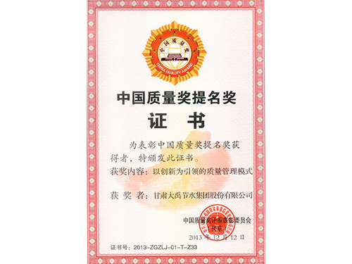 中国质量奖提名奖