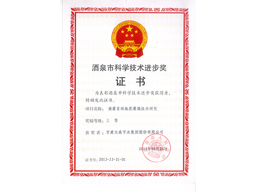 酒泉市科学手艺前进三等奖