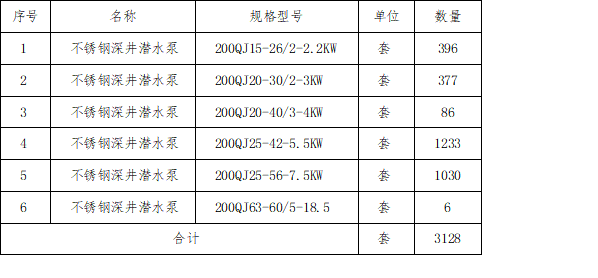 3、招标内容:不锈钢深井潜水泵